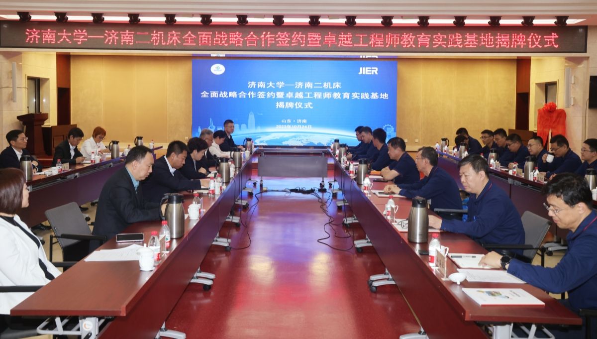 10月24日,我校与济南二机床集团有限公司(以下简称济南二机床集团)全面战略合作签约暨卓越工程师实践基地揭牌仪式在济南二机床集团举行,学校党委书记刘春华,党委常委、副校长黄加栋,济南二机床集团党委书记、董事长张世顺,济南二机床集团党委副书记、董事任立伟,党委委员、副总经理、我校05届校友冯国明等出席仪式。党委(校长)办公室、人力资源处、科技处、研究生院、合作发展处、棋牌游戏平台