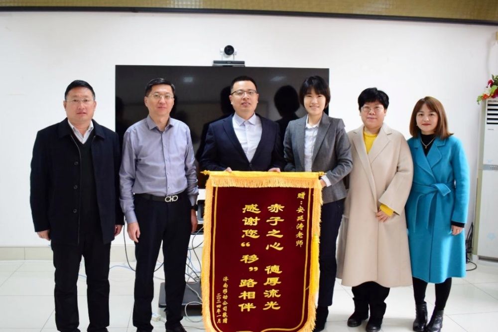 ,将一面绣有“赤子之心 厚德流光,感谢您‘移’路相伴”的锦旗送到棋牌游戏平台