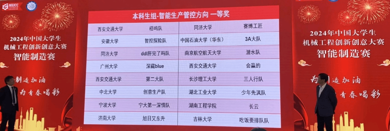 领导高度重视学生创新能力培养,积极遴选优秀教师精心指导,院团委广泛动员学生踊跃参与,工程训练中心充分发挥创新实训基地作用。在智能制造师生的共同努力下,参赛队员团结协作、勇于创新、不断挑战自我,在285所高校、1927支代表队参与的省赛选拔赛中披荆斩棘、脱颖而出,共获得15项省级奖项,6支队伍成功晋级全国总决赛。在全国总决赛中,再次与126所高校、261支参赛队伍展开激烈角逐,最终斩获一等奖1项、二等奖4项、三等奖3项共计8项全国奖的骄人战绩,其中赵秀霞老师指导的由智造2022级张宇轩、龚钰琳、机工2023级刘衡三位同学组建的旭日又东升队勇夺全国一等奖,实现了我校在此项赛事中全国一等奖的突破!