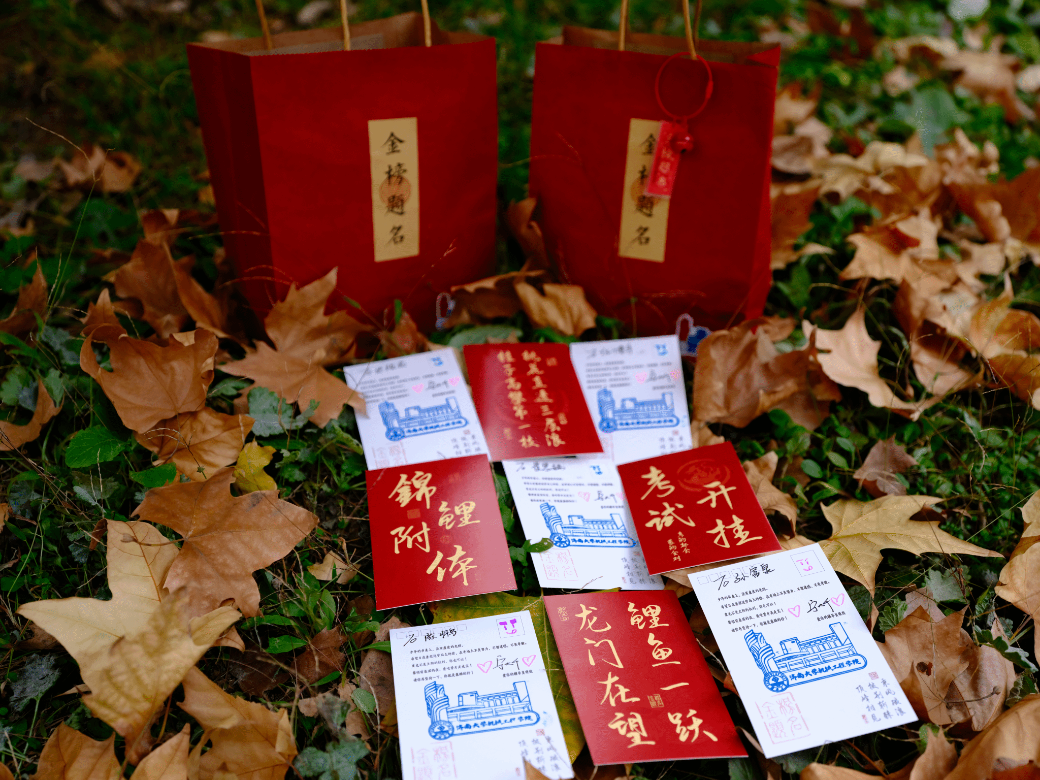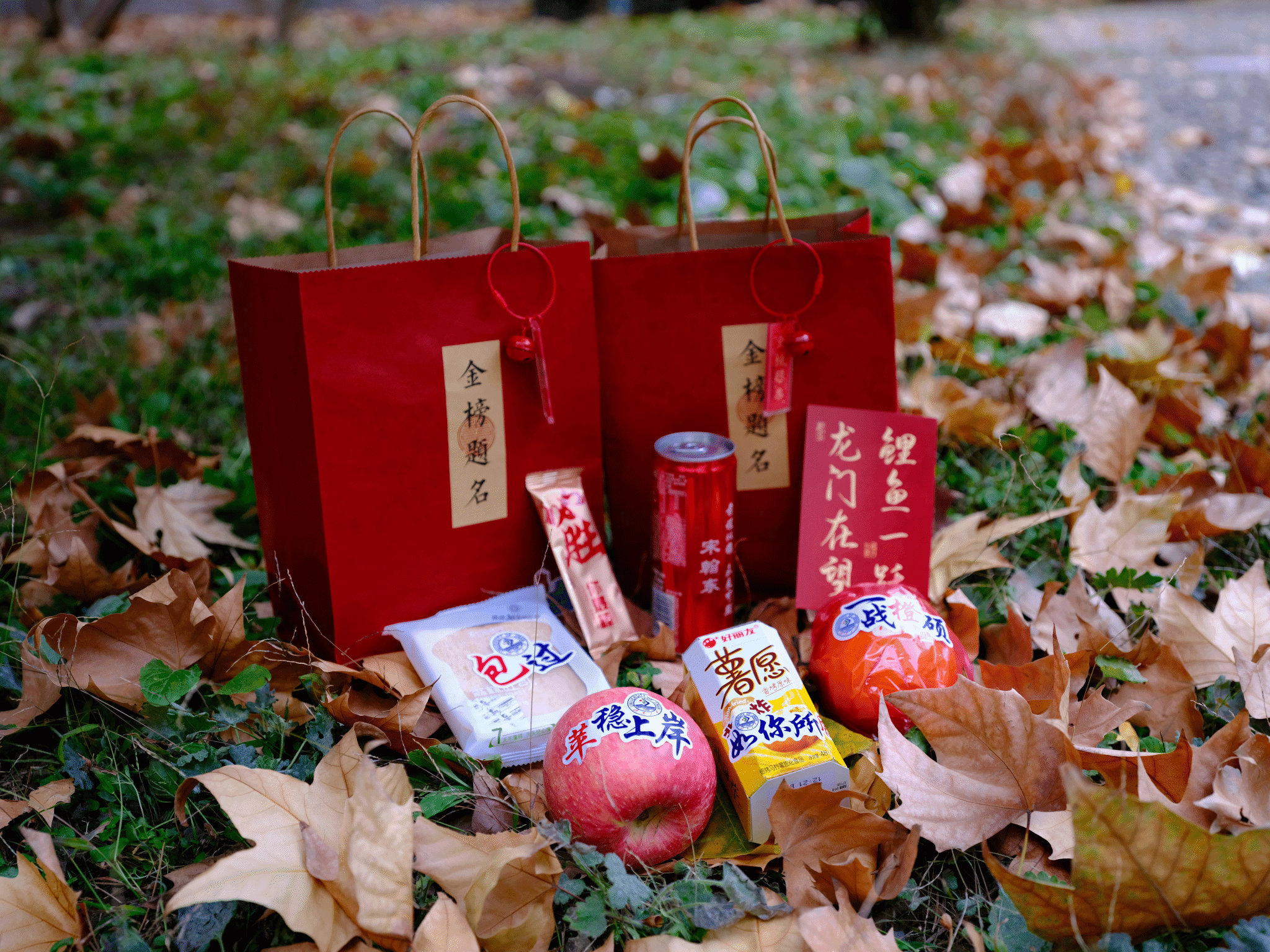 老师对学生的深切关怀。红润的苹果寓意“苹稳上岸”;金黄的橙子象征着“一战橙硕”;薯愿薯片代表如你所“愿”;面包的加入,轻轻诉说着“包过”的鼓励;定制可乐为每位同学送上专属祝福;钥匙扣送上“诸事顺遂,所愿皆所得”的幸运。辅导员宁大千亲笔书写每一份祝福,这份手写的温度,超越了电子屏幕上的冰冷文字,让学生深切感受到被珍视与期待的幸福。