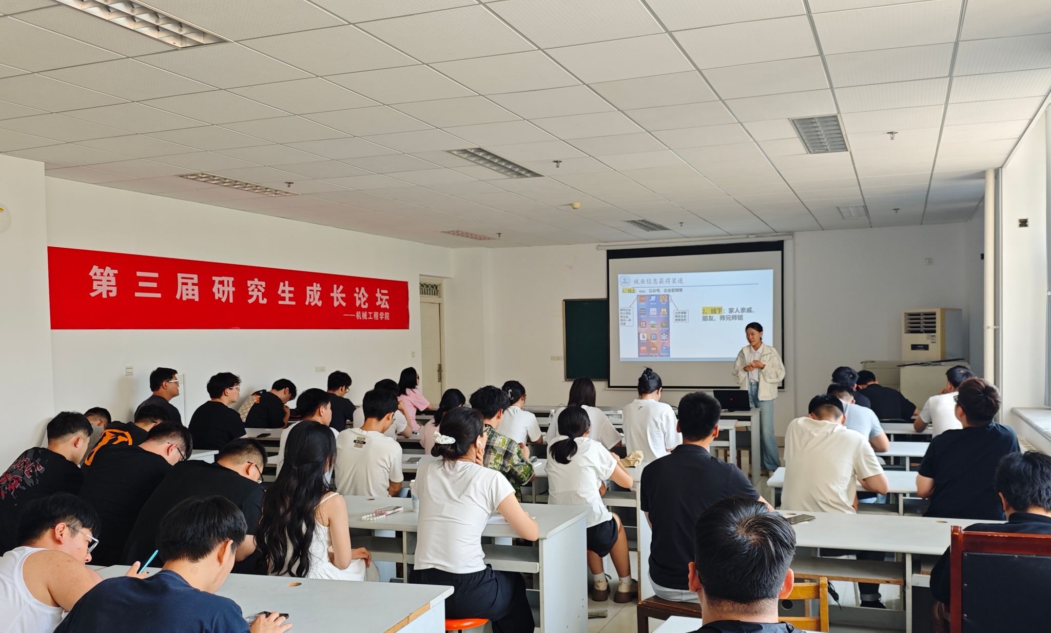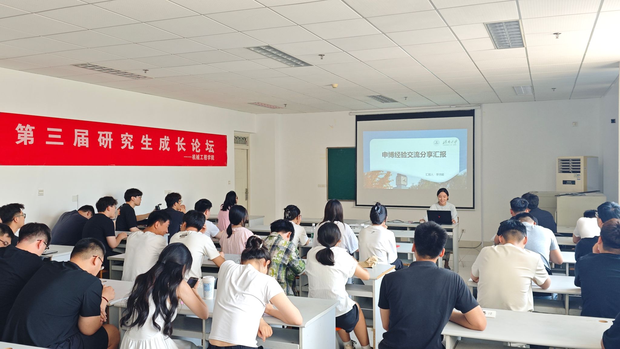 论坛尾声,同学们围绕分享内容展开深入思考与热烈讨论,现场学术氛围浓厚。此次论坛通过朋辈间的经验传承与智慧碰撞,充分发挥优秀毕业生的榜样示范效应,为在校研究生明确奋斗目标、规划发展路径提供了帮助,激励着广大研究生在科研与职业发展道路上奋勇前行、乘风破浪。