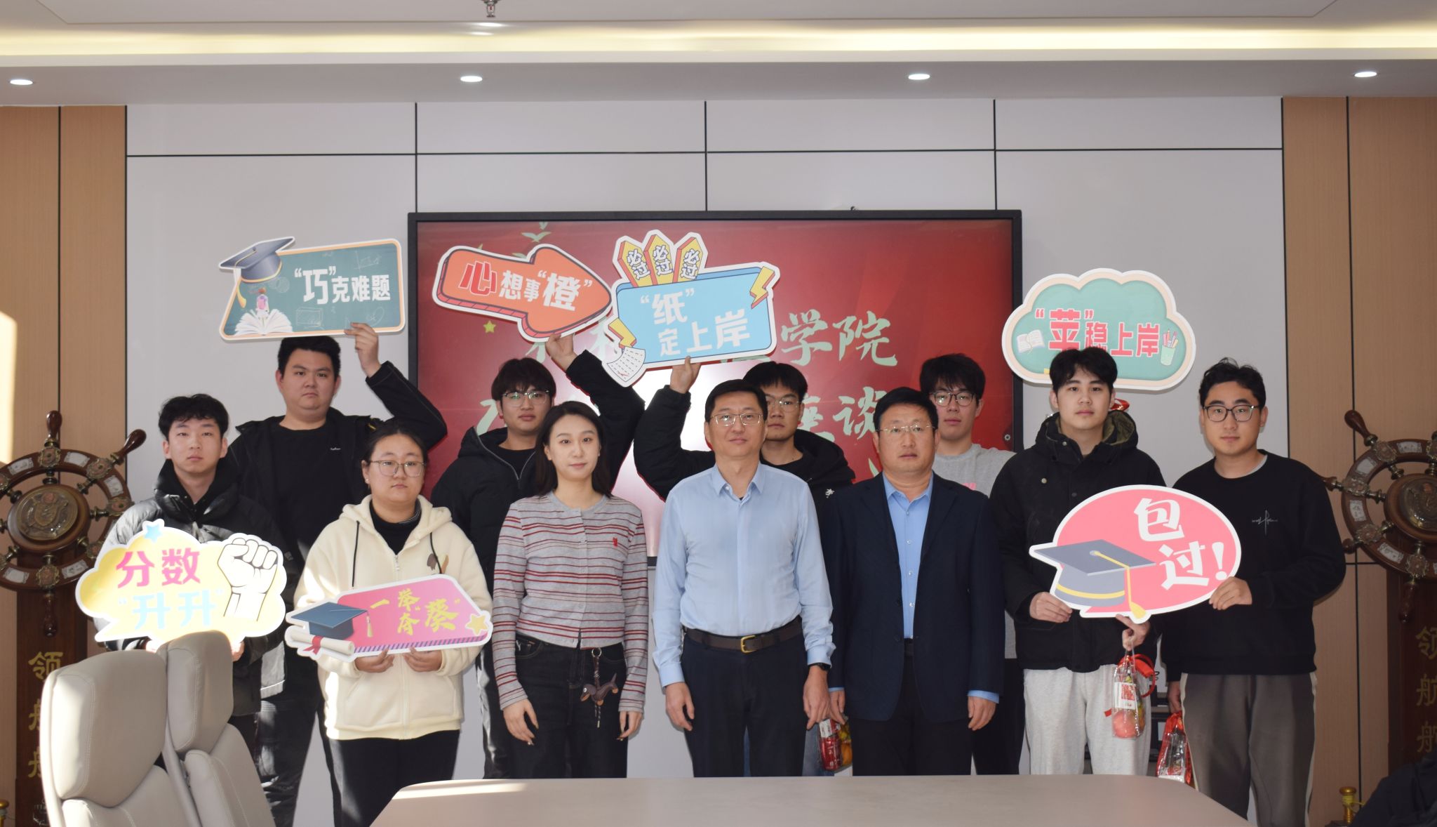 党委副书记孙成政和考研学子代表参加会议,座谈会由辅导员田方圆主持。