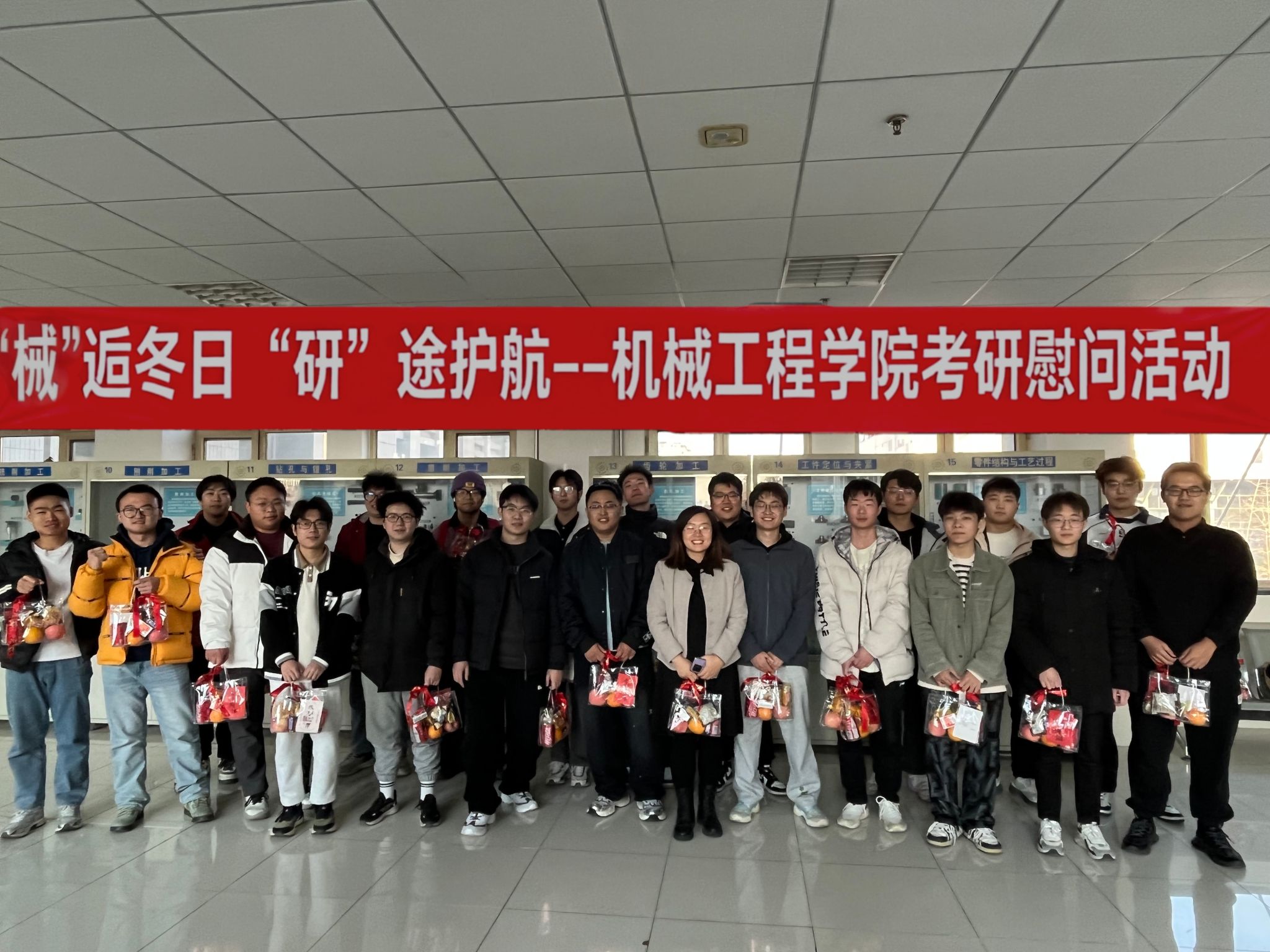 举办以“械”逅冬日 “研”途护航为主题的系列考研送祝福活动。