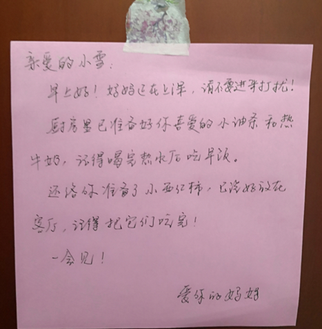 图5门老师提醒女儿不要进房间的小纸条