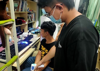 要求测温同学每天都要为所负责的楼层中的所有学生进行体温监测,并将情况如实记录在记录表中,并进行签字。表格则张贴在楼层楼梯口的公共区域以便于公示。在体温检测过程中,测温人员都按照要求佩戴好了口罩,每晚十点左右进入学生公寓。每位同学都积极配合测温人员的工作,伸出右手,接受体温监测。在完成检测后,楼梯口的楼层登记表也都按照要求,填写完整。