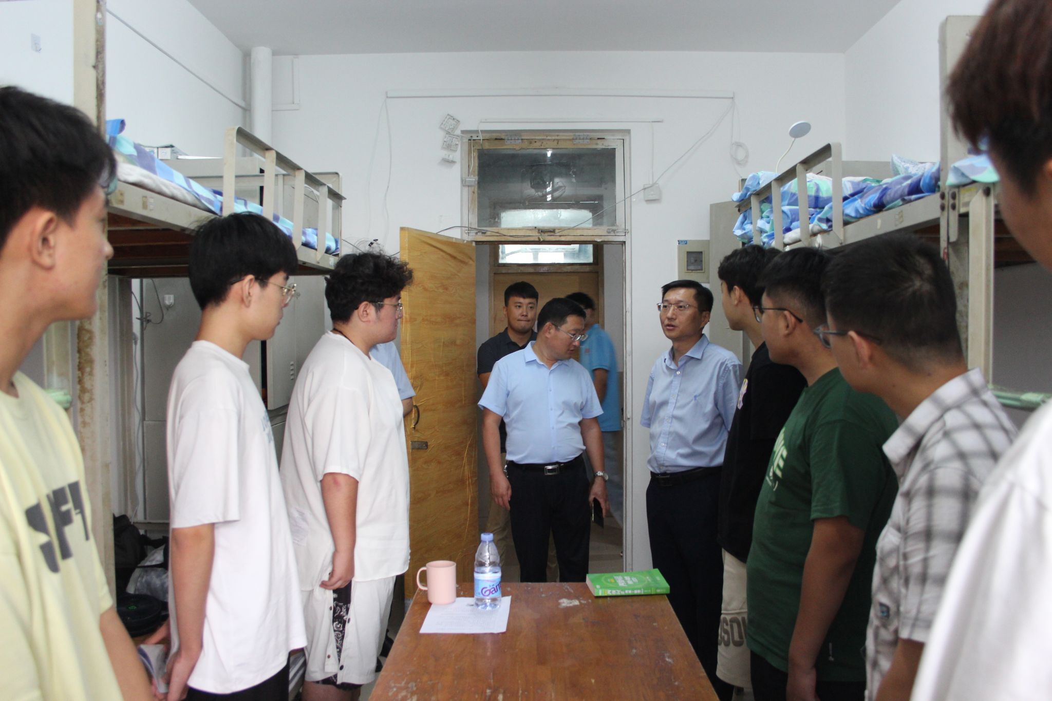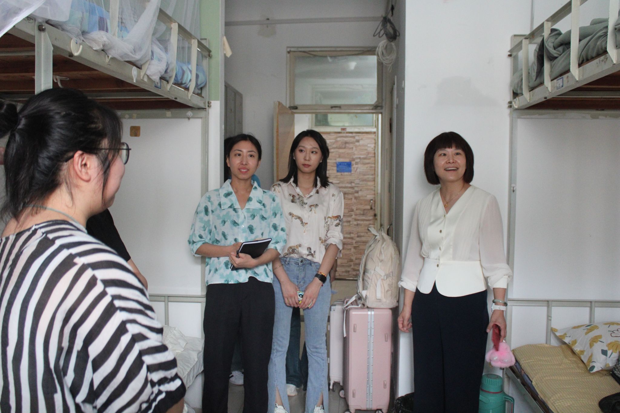 党委书记程涛、院长付秀丽、党委副书记孙成政带领全体辅导员来到新生宿舍,深入了解学生情况,为学生们送去热切的关怀。