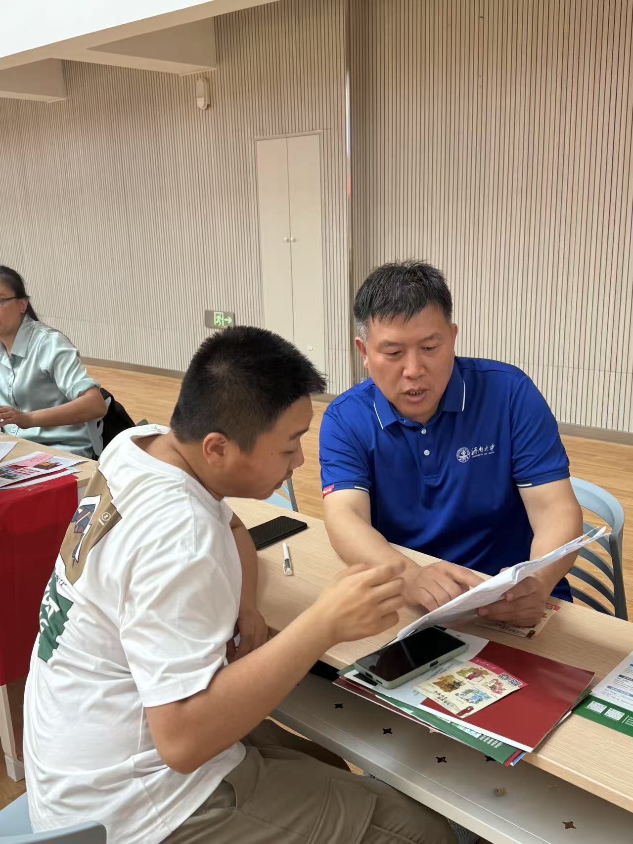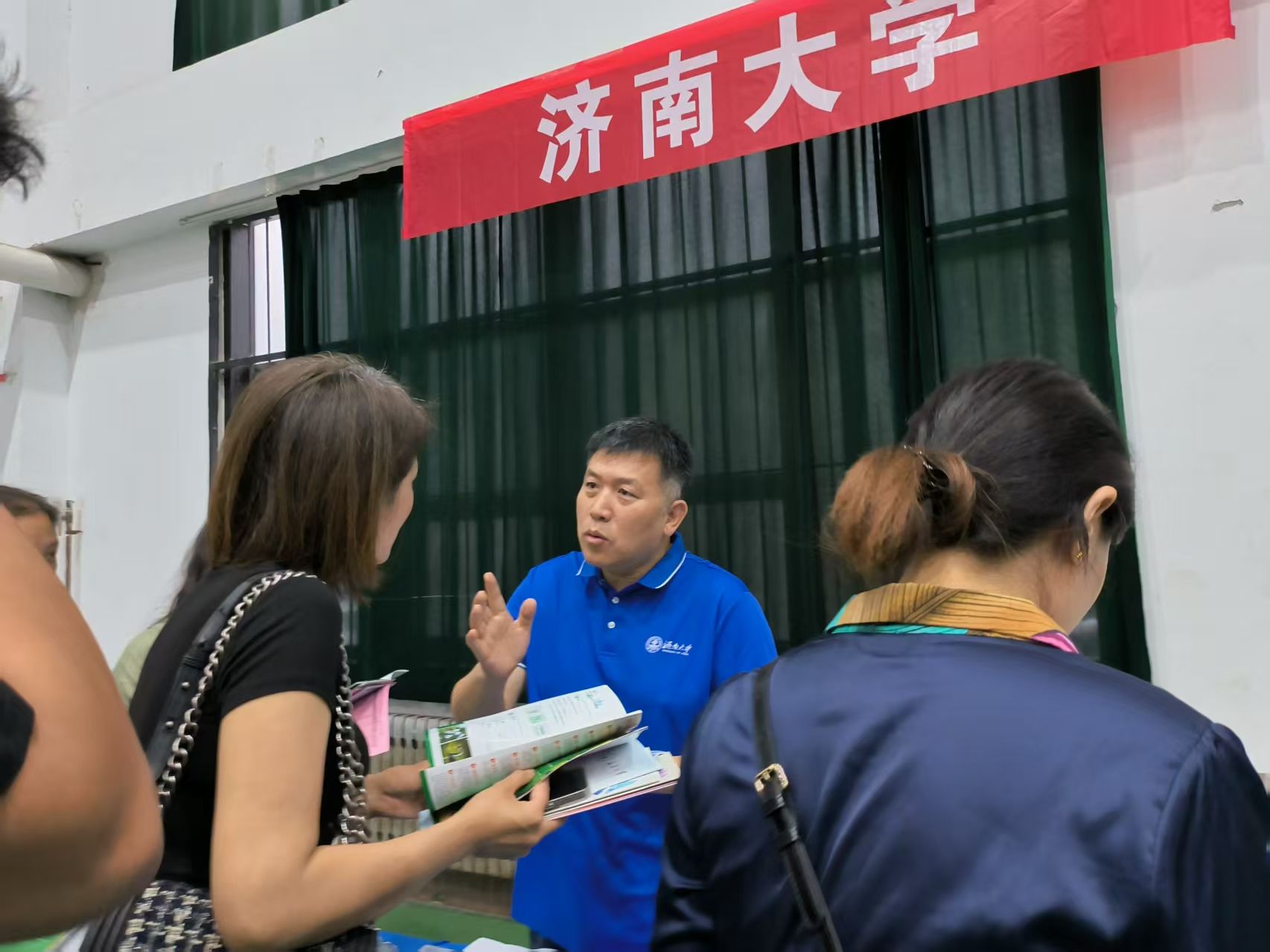 教师王国伟,代表济南大学参加2025年山东省普通高校招生咨询活动,为济南、潍坊、东营、滨州等四地考生和家长提供招生咨询服务。