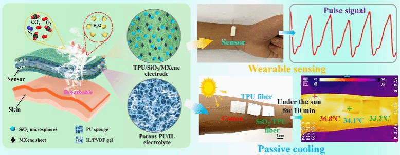 图1 具有人体热管理功能可呼吸离子式传感器的结构与功能示意图