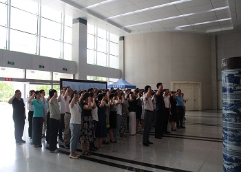 一楼大厅进行入党誓词宣誓和重温党的历程党史学习教育。活动由党委书记程涛同志主持。