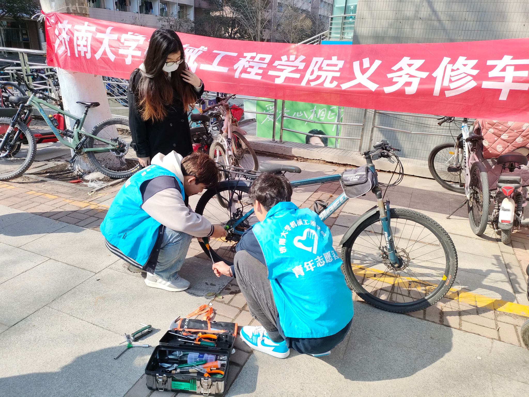 低年级的大学生,秉持“为同学服务,奉献社会”的理念,以义务修车活动为主体,其他非常规活动为辅助,利用课余时间为校园师生及周边社区居民提供免费的自行车和电动车维修服务,服务范围涵盖自行车和电动车的故障诊断、零部件更换、常规保养等多个方面,为校园师生和社区居民的出行提供了极大的便利。成立33年以来,累计修车17000余辆,志愿者服务时间超过10500个小时。
